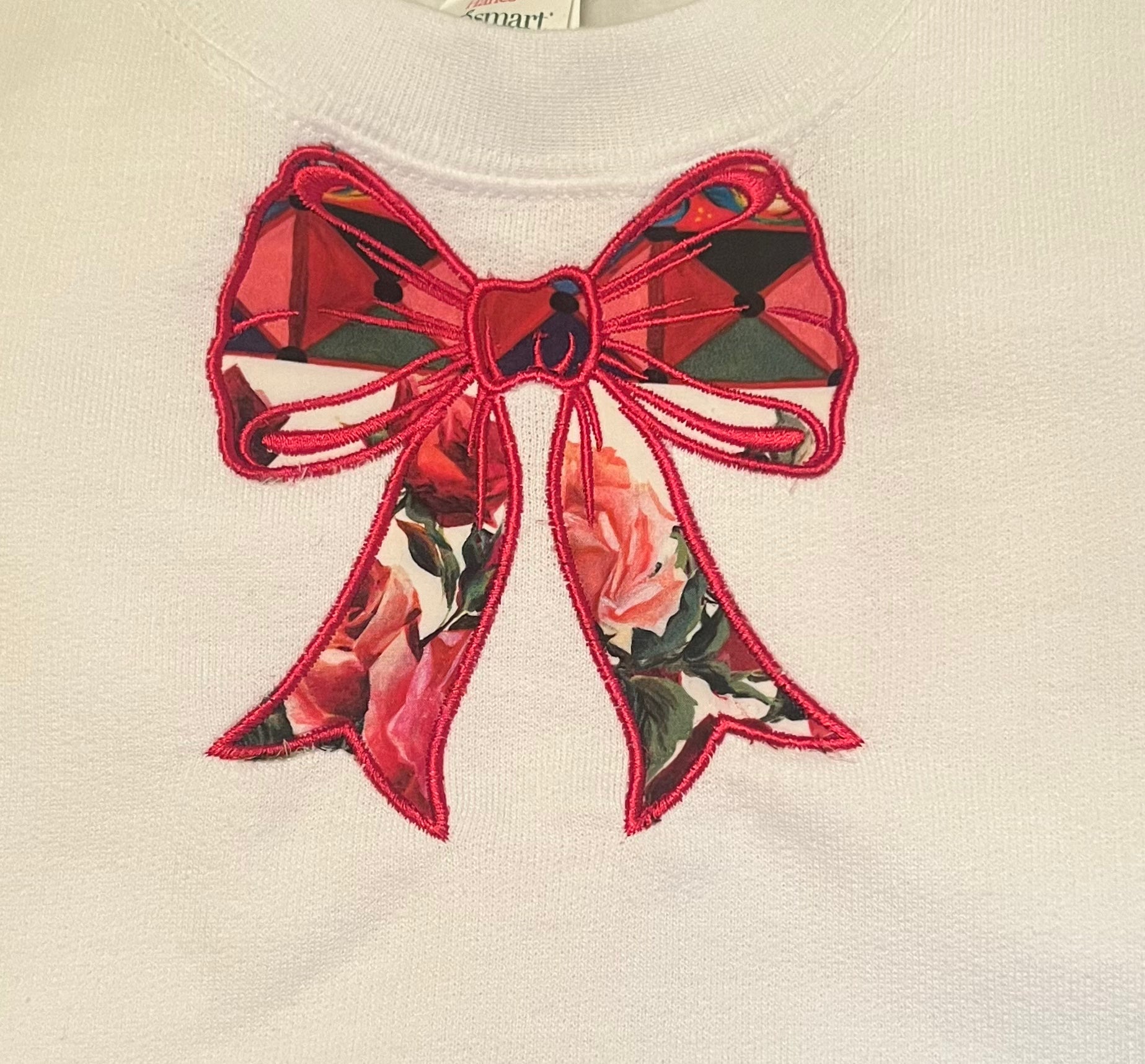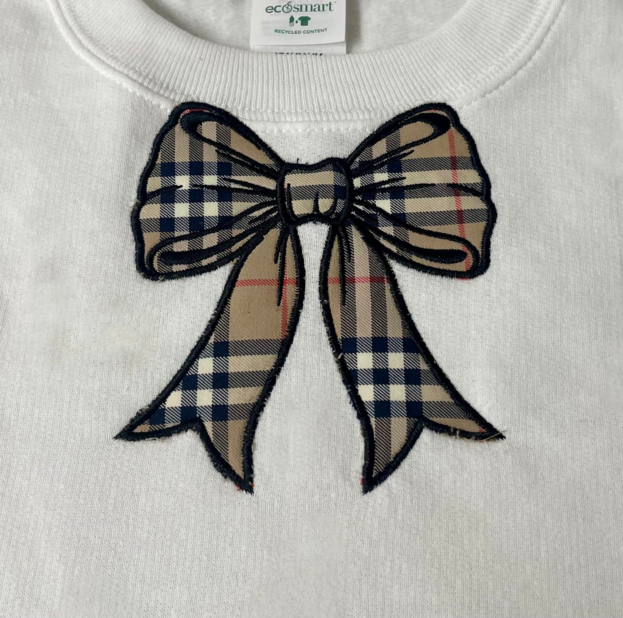 Seriously soft and cozy, this EcoSmart® crewneck sweatshirt is made from a blended fleece fabric featuring cotton sourced from American farms with an upcycled Burberry or Docle & Gabbana fabric bow (check pictues with coordinating sizes for design).